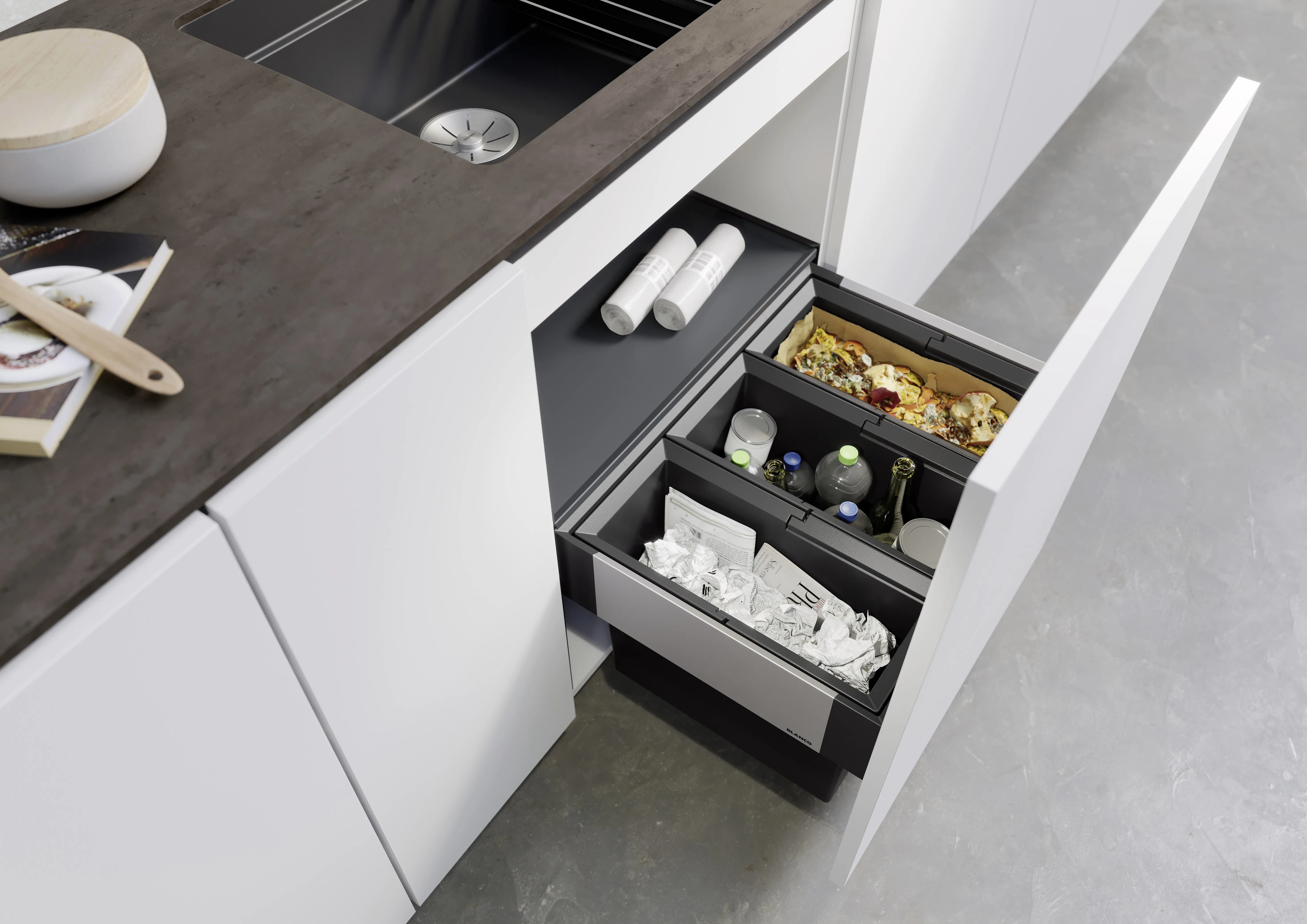 - Vielfältige und verschiedene Abfalltrennmöglichkeiten durch flexible Eimerkombinationen
