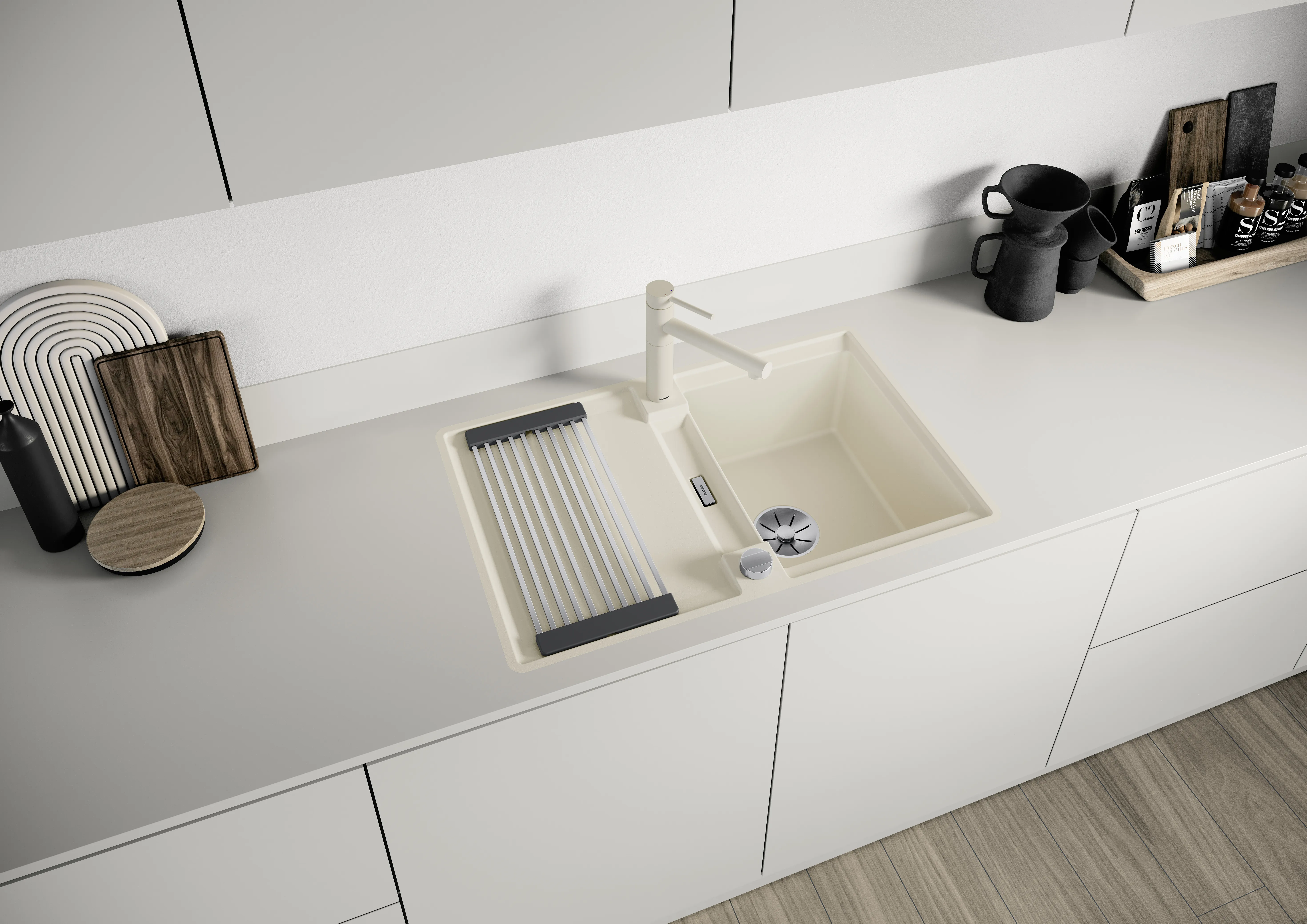- Erhältlich in Silgranit-Farben und Metallic-Oberflächen für schöne Kombinationen mit der Küchenspüle
