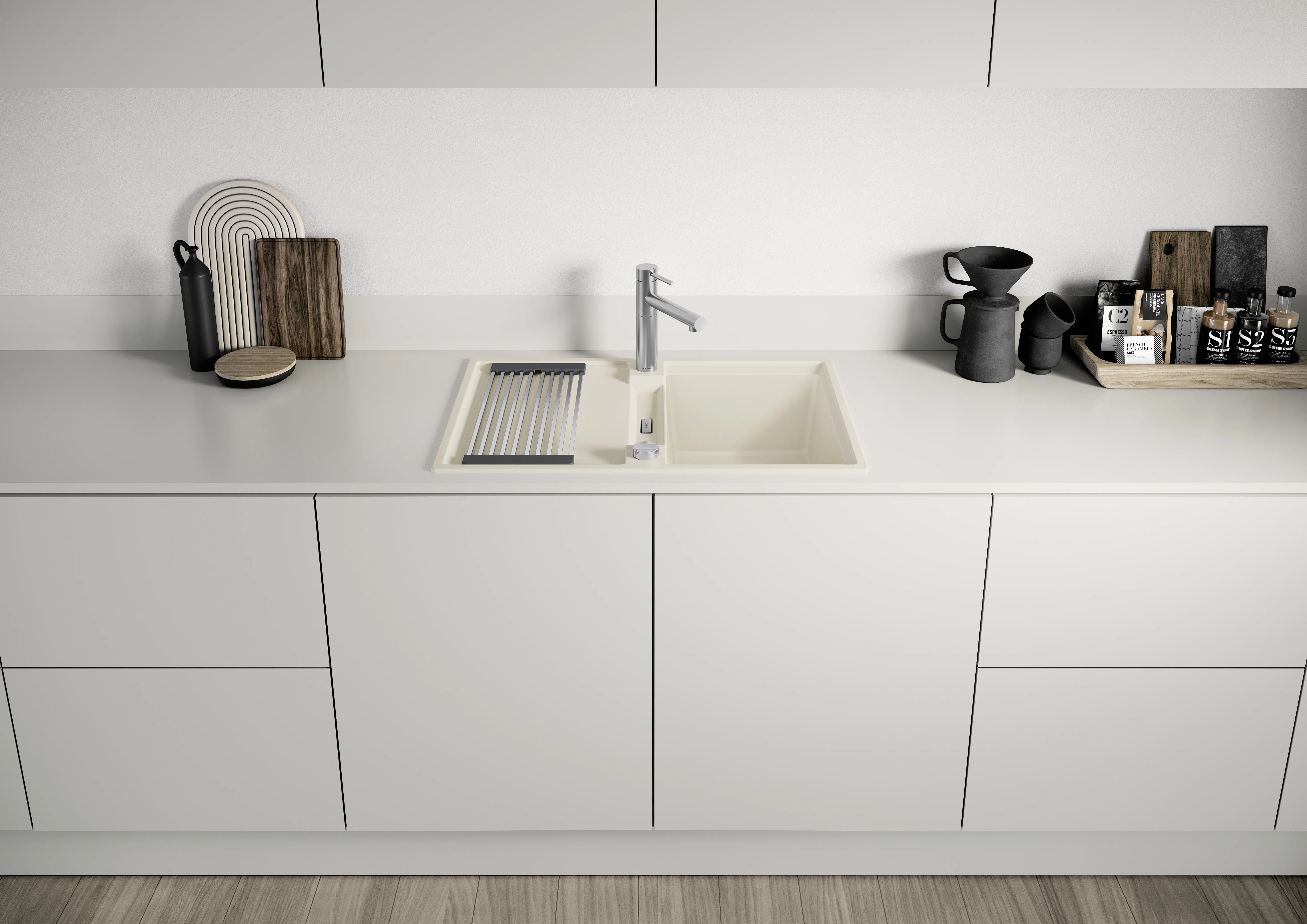 - Erhältlich in Silgranit-Farben und Metallic-Oberflächen für schöne Kombinationen mit der Küchenspüle