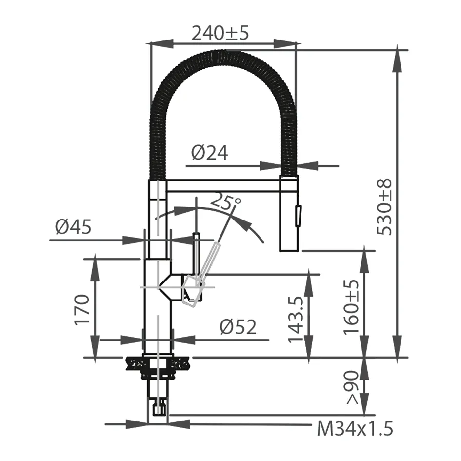 Mit abnehmbarer Profi-Spülbrause. Mit Umstellung für Normal- und Brausestrahl. Wassersparend, mit kaltstart.