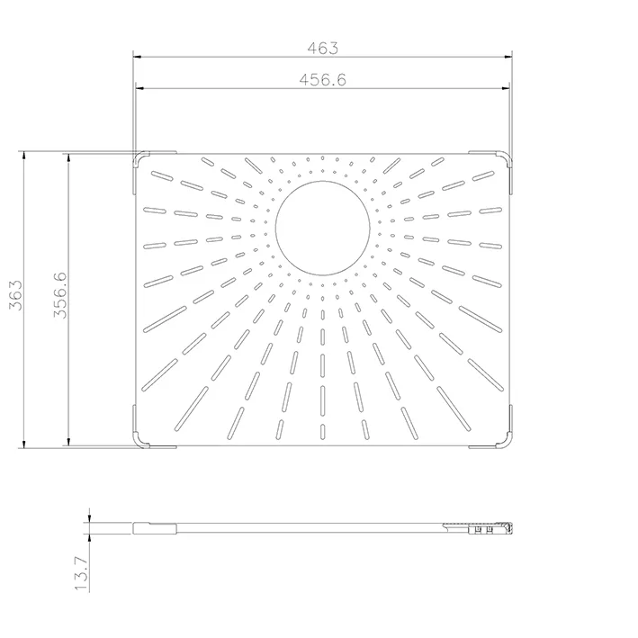 Bodengitter aus Edelstahl im "Sunbeam"-Design. Zum Schutz des Behälterbodens. Abmessungen (LxBxH): 490x390x14mm. Für die 500x400mm Gold SR-Serie, Artikel 708070.
