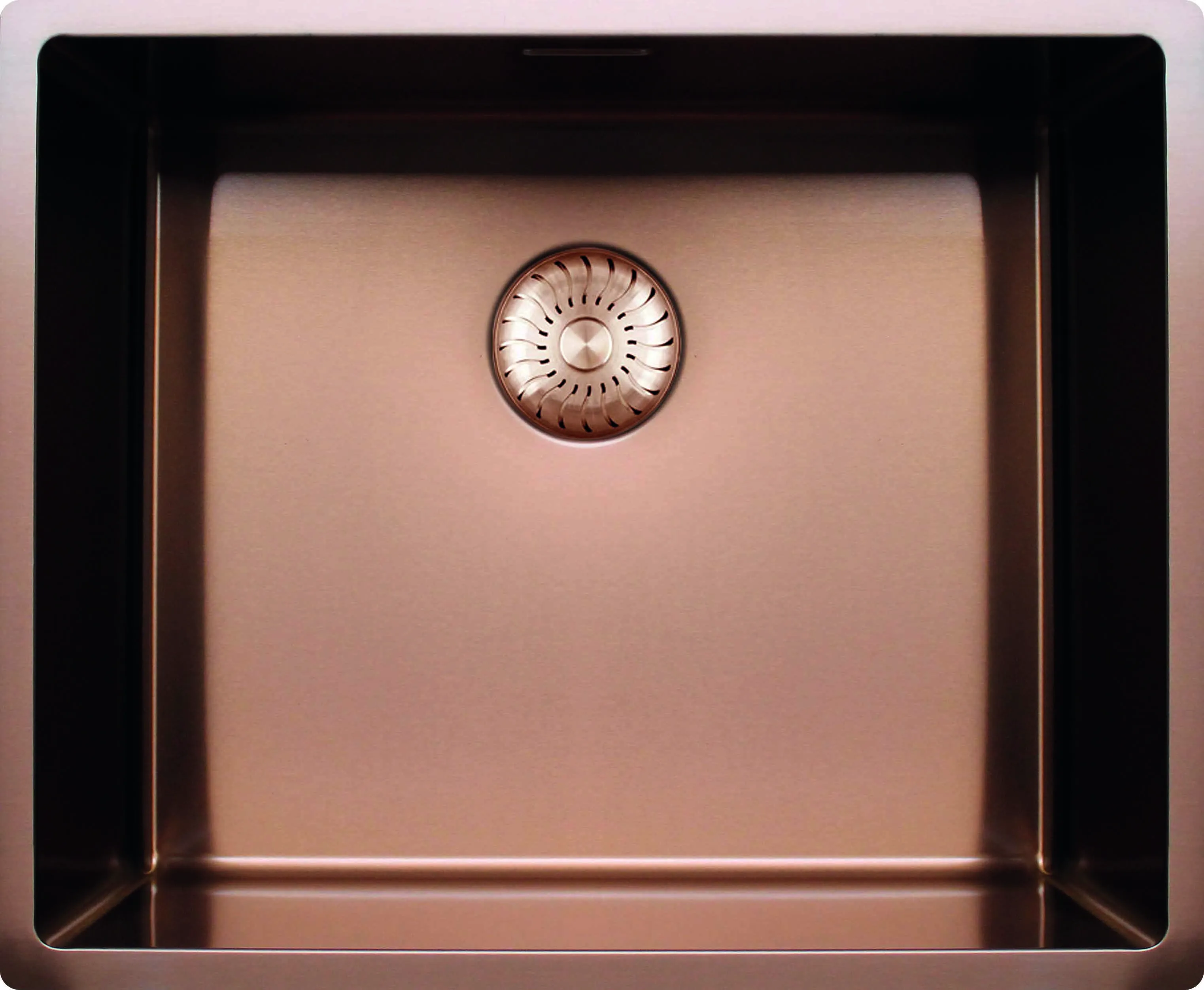 Edelstahl, Tiefe 185mm, inkl. Korbventil-Set mit Design-Überlauf und Klemmen. Die Farbe Copper (Schicht) ist kratzempfindlich. Seien Sie vorsichtig mit harten/spitzen Gegenständen und scheuernden Reinigungsmitteln. Tipp: Verwenden Sie ein unteres (Schutz-)Bodengitter. Abmessungen (BxT) innen: 500x400mm, Außen: 540x440mm.