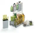 Ab 30er Auszugs-Schrank (mit loser Tür bestellen) oder im Drehtüren-Schrank ist das Produkt einsetzbar und bringt viel Nutzen, vielfältige Verwendungsmöglichkeiten und Variantenreichtum in die Küche. Durch den vorhandenen Vollauszug ist er darüber hinaus auch komfortabel.