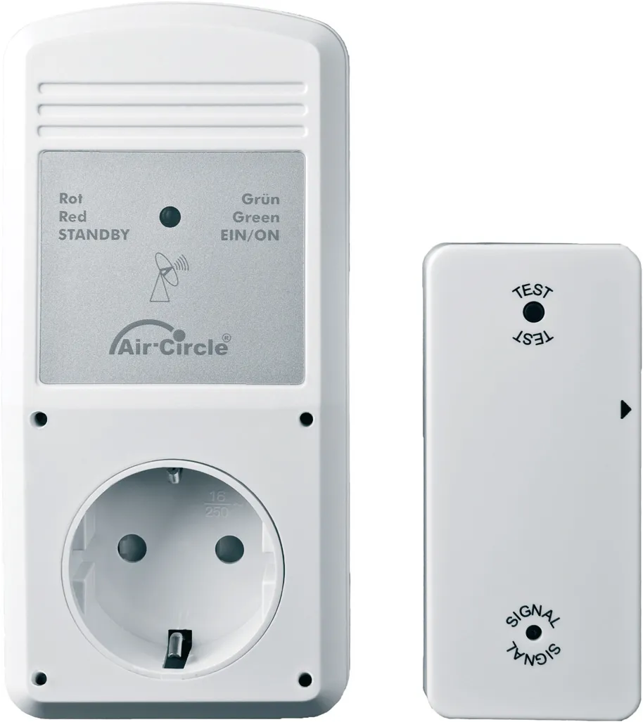 Kabelloser Funkbetrieb. Mit Batterie beim Fenster-Teil. Versorgung des Steuerteiles über das Stromnetz.