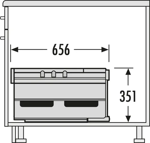 Für Diagonal-Eckspülenschränke ab 90 cm Unterschrank-Breite. Vollauszug.