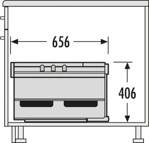 Für Diagonal-Eckspülenschränke ab 90 cm Unterschrank-Breite. Vollauszug.
