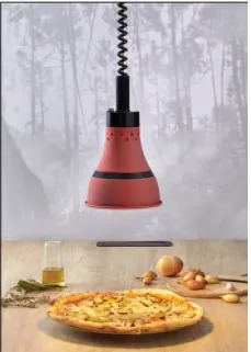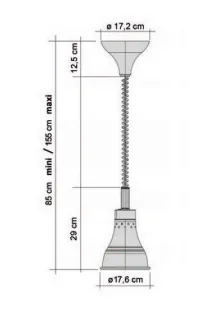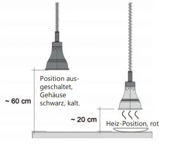 Dieses Wärmesystem in Form einer Lampe ist an einer höhenverstellbaren Zuleitung befestigt und kann so jederzeit in die gewünschte Höhe gezogen werden.