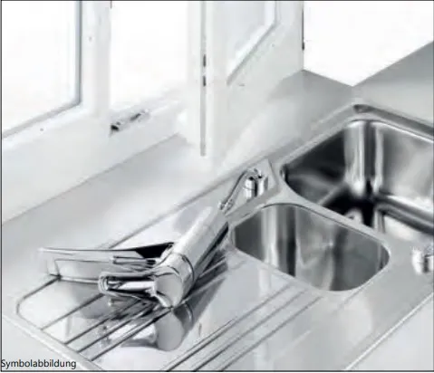Abnehmbare Armatur (aus Hülse in Arbeitsplatte ziehen) zur Montage vor einem Fenster. Gegossener Schwenkauslauf.