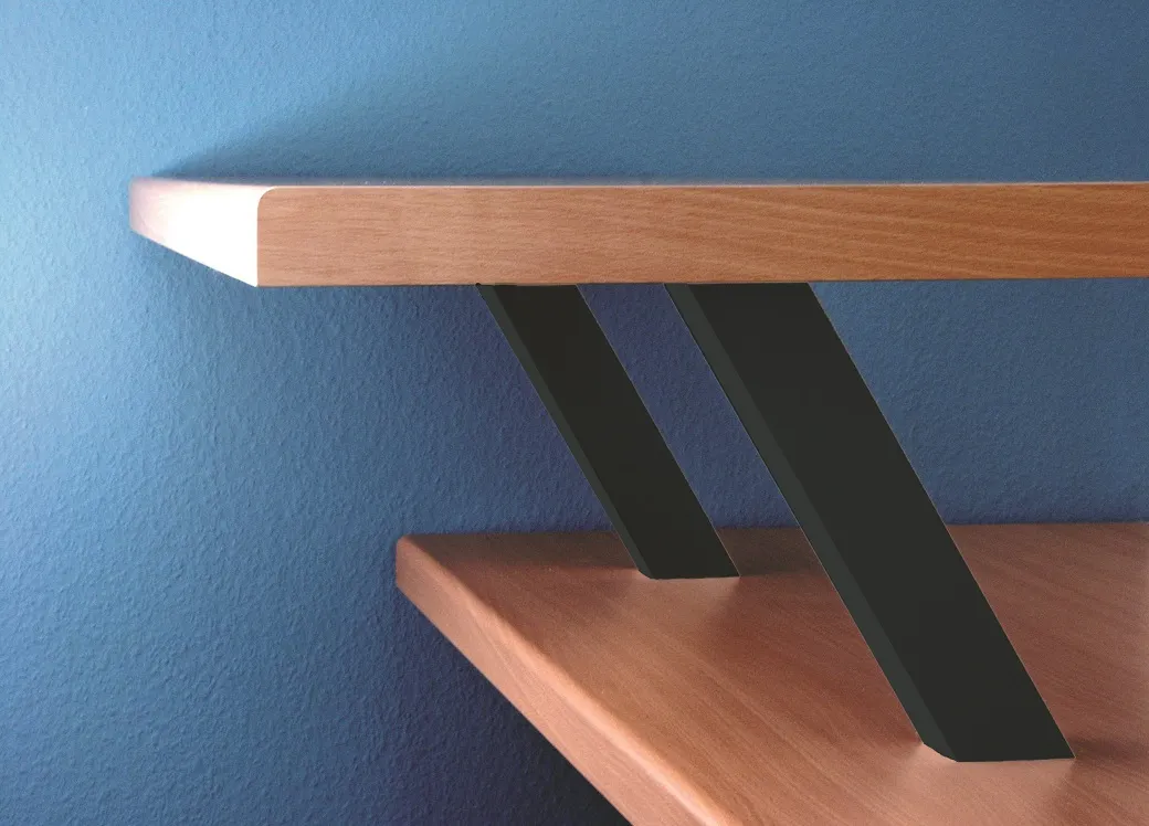 Universelle, moderne, schräge Konsole in stabiler Ausführung zur Montage von Theken aus Holz. Elegant, da ohne Flansch auf der Arbeitsplatte. Neigung 30°.
