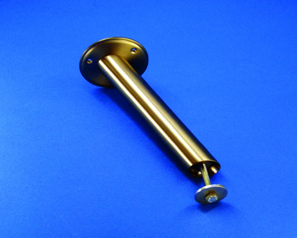 Durchmesser 45 mm mit oberer Platte (Durchmesser 115 mm). Ausladung 140 mm. Befestigung M10. Ausführung ohne Flansch auf der Arbeitsplatte.