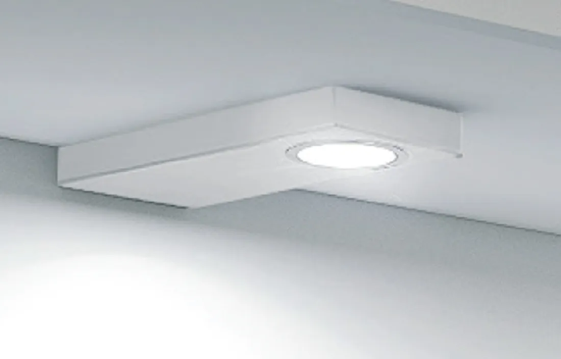 Bei der Farbwechsel-Version sitzt der Schalter als Leuchtpunkt auf der Leuchten-Unterseite und die Lichtfarbe warm oder neutral wird durch mehrfaches Drücken des Schalters eingestellt.