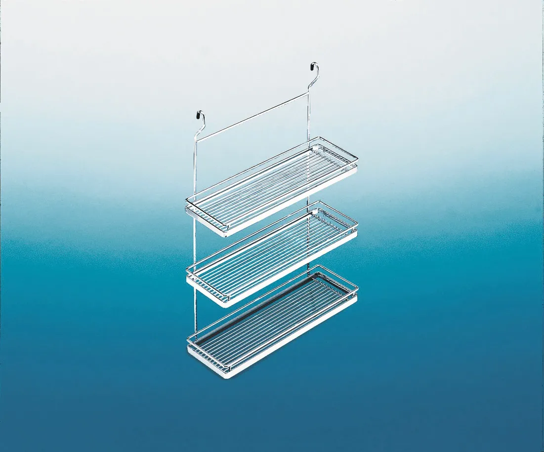 Bringen Sie frei an der Wand ein Relingrohr an und hängen Sie diese Ablage wie ein abnehmbares Regal ein.