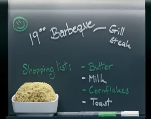 Die Frontseite ist speziell beschichtet und lässt sich mit abwischbaren Stiften beschriften.