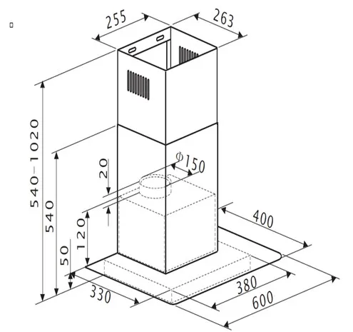 Fettfilter Menge: 1 x MF10 Fettfilter Material: Aluminium Fettfilter spülmaschinenfest Teleskopkamin ausziehbar von / bis 54,00 - 102,00 cm Gesamthöhe durch Teleskopkamin: 102,00 cm benötigte Menge Kohlefilter mit Modelbezeichnung: 2 x CF130 mitgeliefertes Zubehör: Rückschlagklappe, Abluftschlauch, : Befestigungsmaterial, Bedienungsanleitung