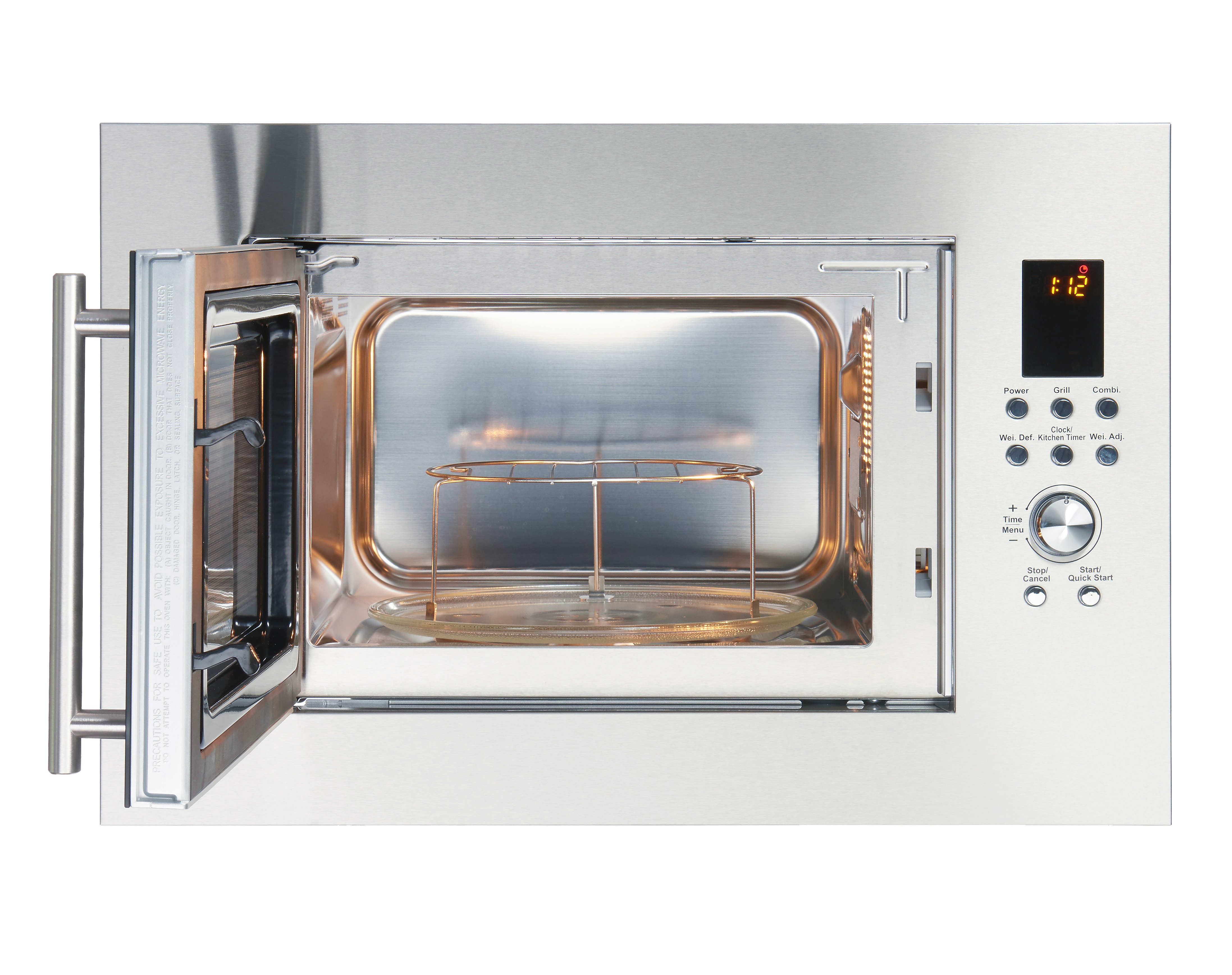 Gehäusefront Edelstahl gebürstet Material Garraum Edelstahl Volumen Garraum: 23 Liter Maximale Leistung Mikrowelle: 900 Watt Maximale Leistung Grill: 1000 Watt Anzahl Leistungsstufen Mikrowelle :6 Anzahl Leistungsstufen Grill :1 Anzahl Leistungsstufen kombiniert :2 automatische Garprogramme: 8