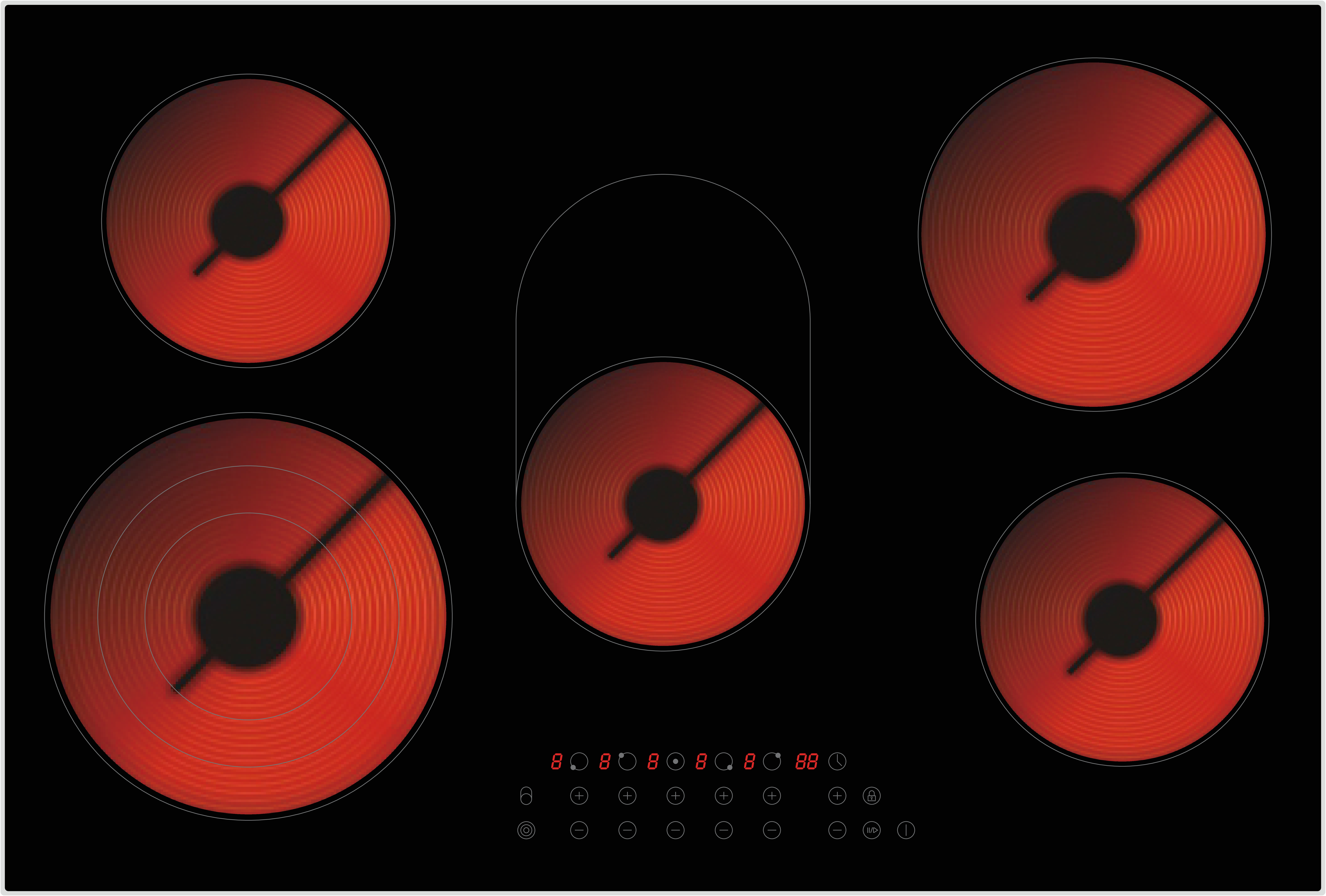 Bedienpanel: Touch Control Material Kochfeld:Glaskeramik Anzahl Kochfelder: 5 Durchmesser Kochfeld vorne links: 12,00 / 17,50 / 23,00 cm Durchmesser Kochfeld hinten links:16,50 cm Durchmesser Kochfeld mitte:16,50 cm Durchmesser Kochfeld hinten rechts: 20,00 cm Durchmesser Kochfeld vorne rechts: 16,50 cm Leistung Kochfeld vorne links 2300 Watt Leistung Kochfeld hinten links:1200 Watt Leistung Kochfeld mitte: 2000 Watt Leistung Kochfeld hinten rechts: 1500 Watt Leistung Kochfeld vorne rechts: 1200 Watt Maximale Leistung: 8300 Watt Spannung: 220 - 240 Volt Frequenz: 50 Hz