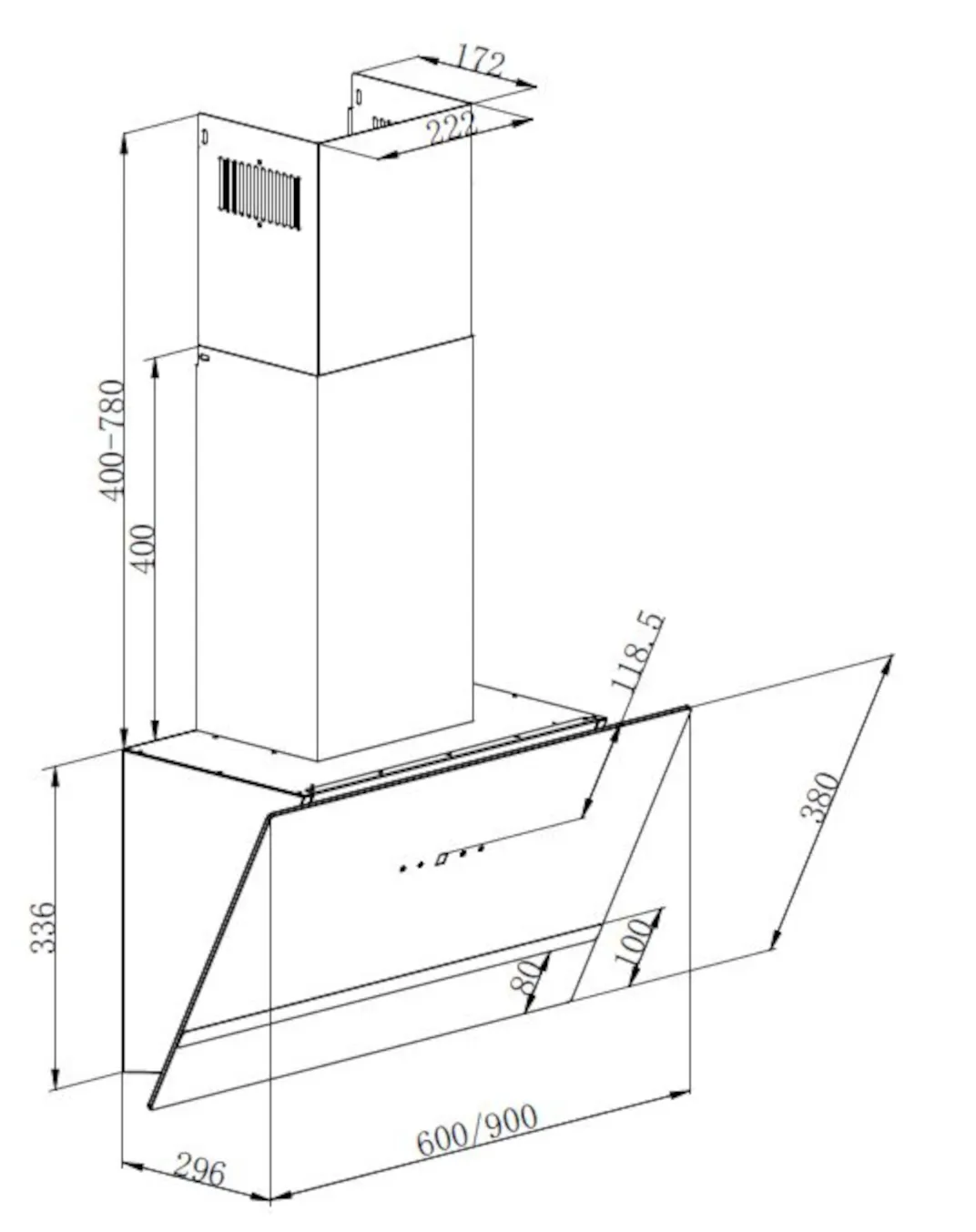 33,60 - 111,60 x 90,00 x 29,60 cm (HxBxT)