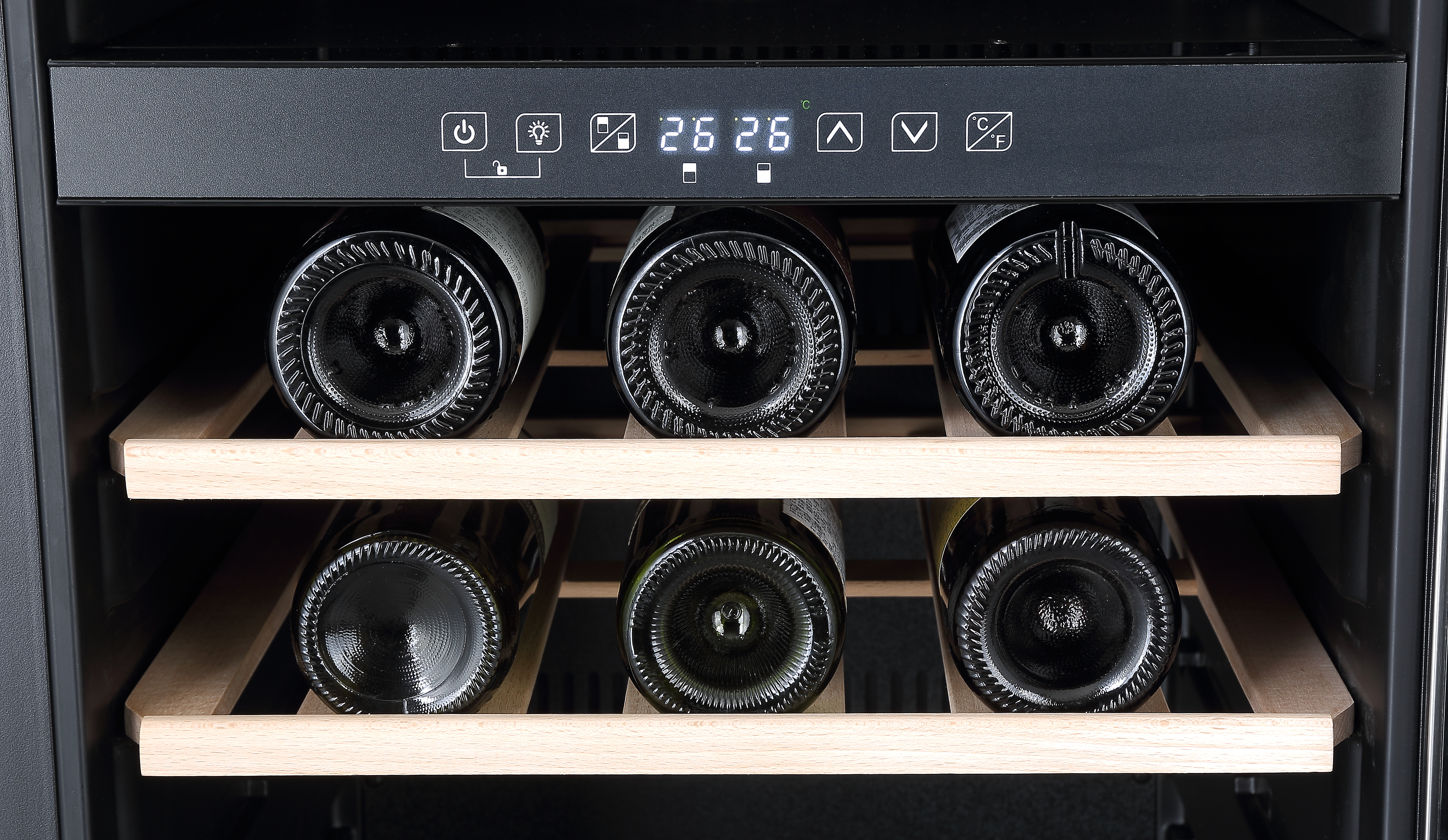 jährlicher Energieverbrauch: 152,00 kWh/Jahr Nutzinhalt Gesamt :193 Liter davon Weinteil: 193 Liter Fassungsvermögen :72 Flaschen Temperaturzonen: 2 Temperatur einstellbar von - bis 5 - 22 °C Temperaturanzeige :LED Temperaturkontrolle: Elektronisch Kältemittel: R600a Kältemittelmenge :35 Gramm Geräuschemission :41 dB(A) re 1 pW Luftschallemissionsklasse C Freistehend