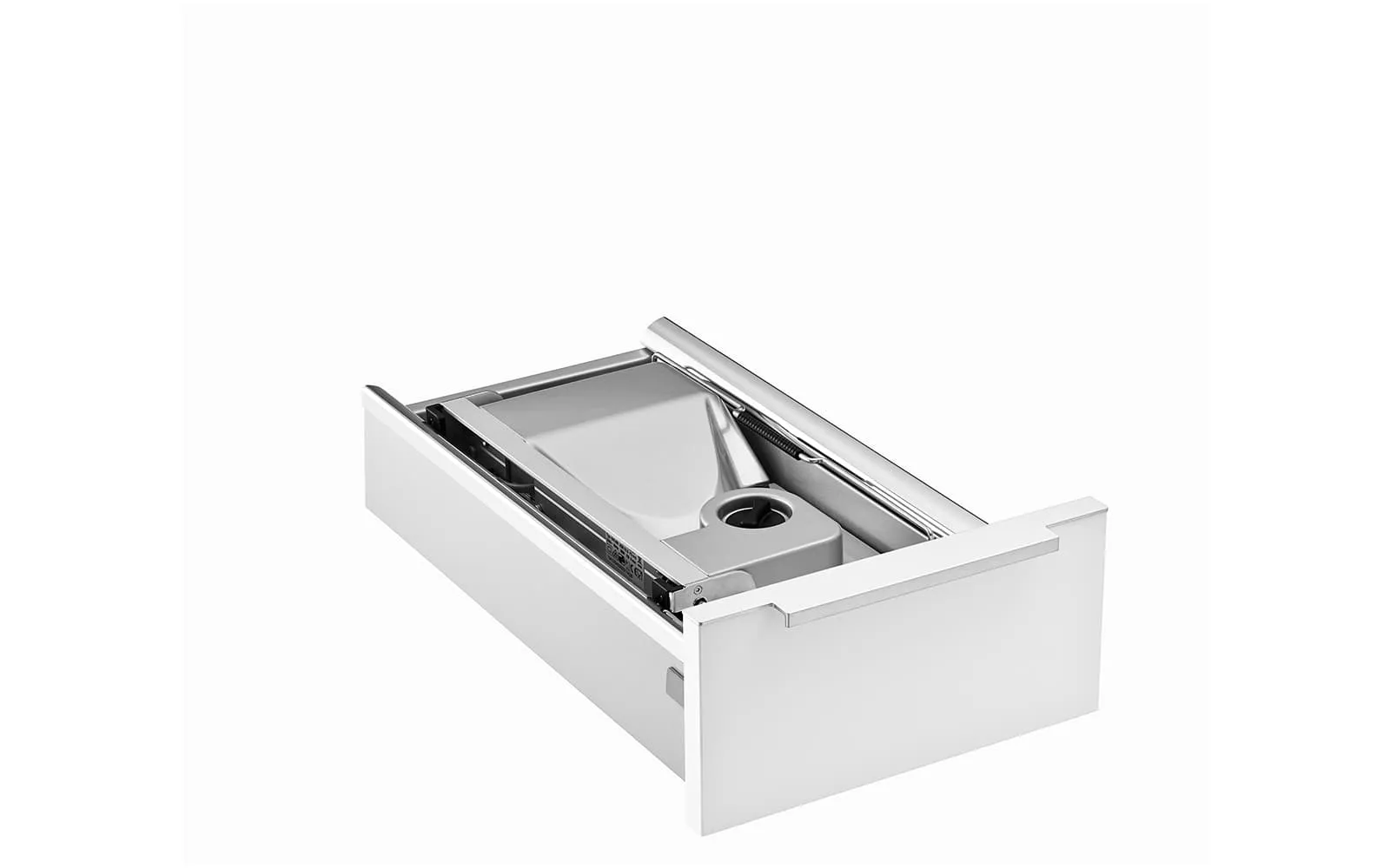 Das Gerät braucht extrem wenig Platz und kann zur Reinigung problemlos aus der Schublade ausgebaut werden.