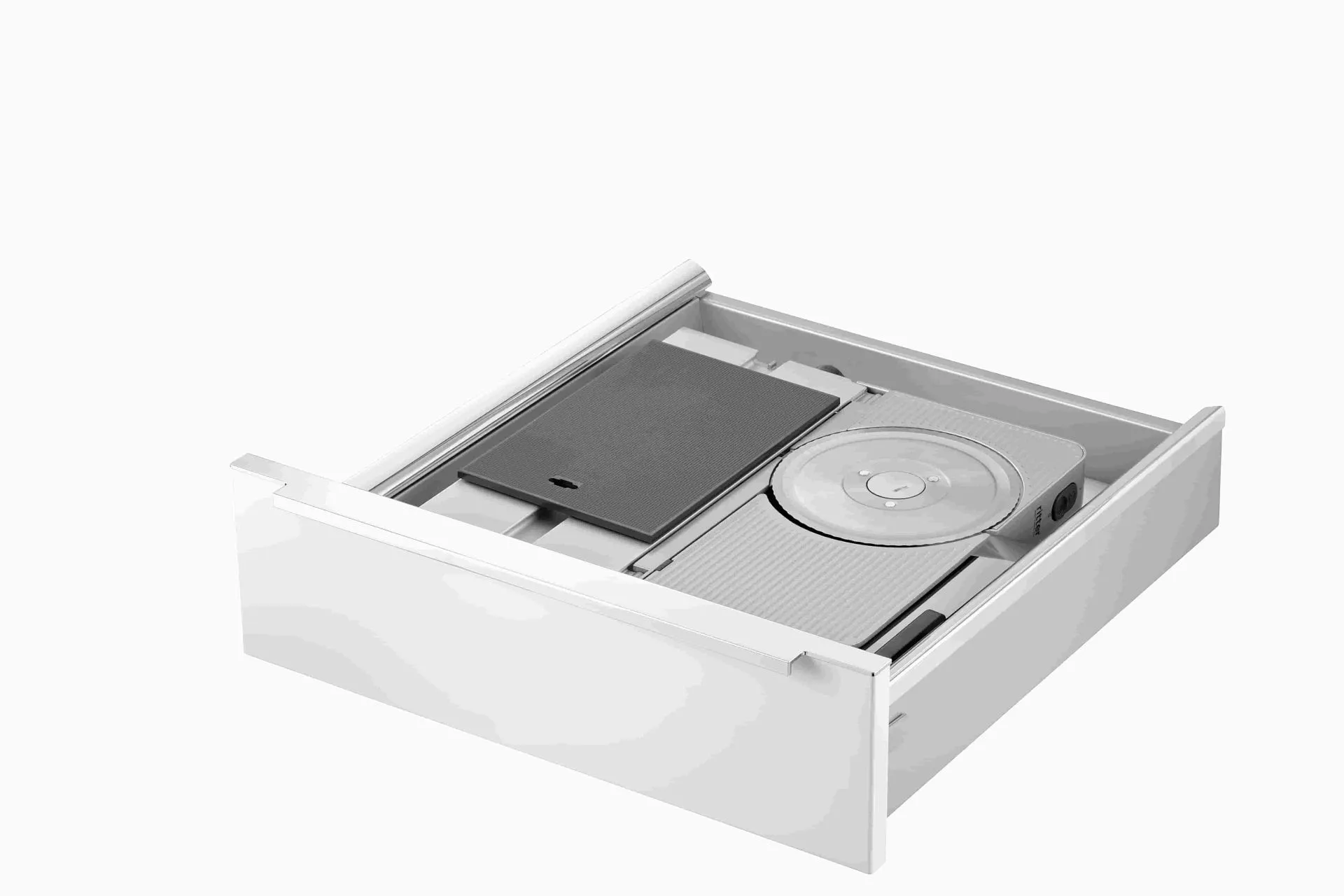 In Küchenschubladen eingebaute Allesschneider sind platzsparend und dabei doch immer griffbereit. Die Einbaulösung schafft zudem noch Platz auf der Arbeitsplatte.
