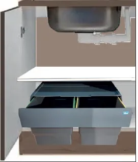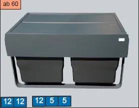 Ausführung hier: ShortLine Short L Mini, dunkelgrau mit Stahl, 2 x 12 Liter, ab 60er Schrank
