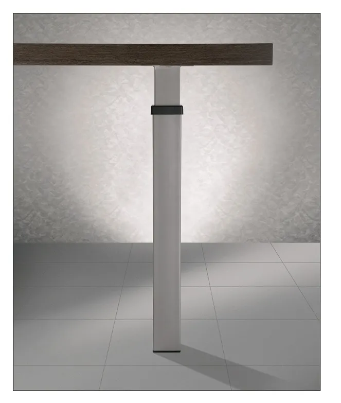Der quadratische Teleskop-Stützfuß mit 80 x 80 mm in der Farbe schwarz oder Edelstahl ist höhenverstellbar zwischen 68 - 87 cm oder 90 - 110 cm.