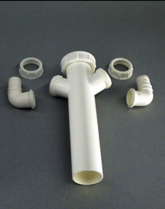 Verstellrohr mit Überwurfmutter und Dichtung, mit einem oder zwei Abwasserschlauch-Anschlüssen.