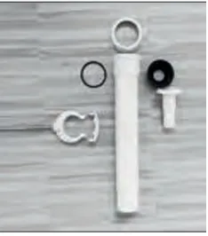 Ein vielseitiges Teil aus Kunststoff mit Überwurfmutter, Dichtung, Wandhalter und Nebenanschluss.